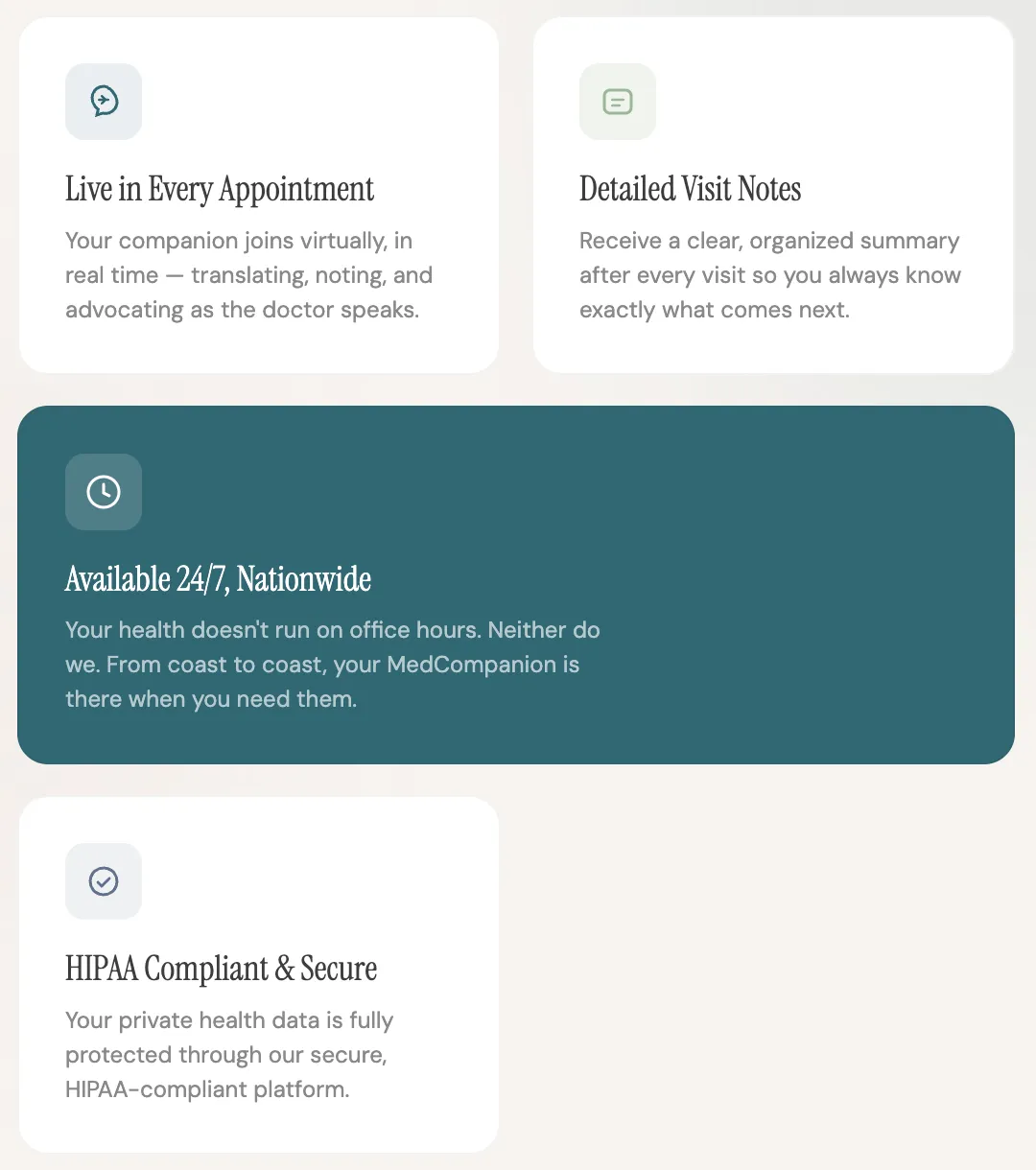 MedCompanion is a personalized patient advocacy and care coordination service that helps individuals and families make sense of their medical appointments, insurance requirements, and treatment plans—with real, highly trained humans by their side.